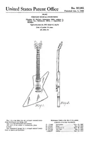 The Gibson Futura was an electric guitar that was the precursor of the model introduced as the Explorer. These prototypes, christened "Futura" many years later, resembled the eventual Explorer design, but had a differently-proportioned body, as well as a 'split' or 'forked' headstock that survived into the first few production Explorers but was quickly replaced. Gibson obtained U.S. Design Patent number 181,865 for the Futura body shape.