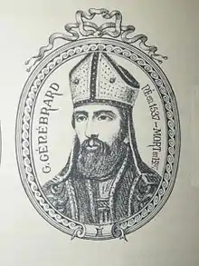 Gilbert Génébrard (12 December 1535, Riom, Puy-de-Dôme – 16 February 1597, Semur, Côte-d'Or) was a French Benedictine exegete and Orientalist.