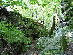 Gildersleeve Mountain is interesting and important because it is within one of the largest and most densely populated metropolitan areas in the United States (regional population 2.9 million). It is a relatively unspoiled and unique area just 18 miles (29 km) from downtown Cleveland. While this is not unique in a region where urban and suburban forest preserves abound, it is one of only two natural areas with higher elevations and unique rock outcroppings. Little Mountain, which is near the Holden Arboretum, is similar to Gildersleeve Mountain but is accessible on guided walks only. Gildersleeve Mountain is located in the Chapin Forest Reservation of Lake Metroparks and is referred to as the "scenic overlook".[2]