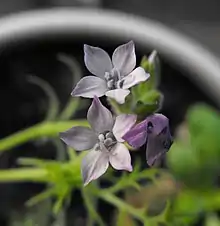 Gilia nevinii is an uncommon species of flowering plant in the phlox family known by the common name Nevin's gilia. It is known only from the Channel Islands of California and Guadalupe Island off Baja California, where it grows in seaside canyons and flats. This is an erect herb with a hairy stem up to about 40 centimeters tall lined with deeply lobed leaves. The glandular inflorescence produces yellow-throated lavender flowers 8 to 14 millimeters wide, each with protruding stamens tipped with blue anthers.