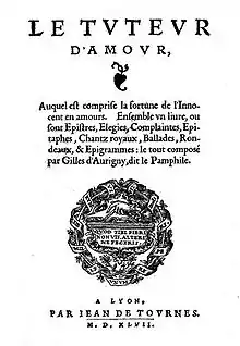 - Le Tuteur d'amour, auquel est comprise la fortune de l'Innocent en amour, composé par Gilles d'Aurigny dict le Pamphille. Ensemble un livre où sont epistres, elegies, complainctes, epitaphes, chants royaulx, ballades ou rondeaulx (1546), reprinted in Lyon 1547 , Paris 1553.