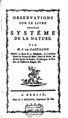 His son Frederick Salvemini de Castillon (1747-1814) also became a member Berlin Academy and was a writer for Diderot's Encyclopédie.[7][8]