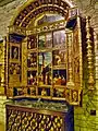 Chapel of the Holy Martyrs, with a stone 14th-century Gothic Casket of the Holy Martyrs of Girona in the foreground (the 4 busts on it date from 1659), and a Baroque retable from 1679 in the background.