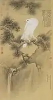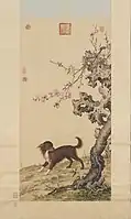 In August 1715, Castiglione arrived in Macau, China, and reached Beijing later in the year.[1] He stayed at a Jesuit church called St Joseph Mission or Eastern Hall (Dong Tang) in Chinese.[4] He was presented to the Kangxi Emperor who viewed his painting of a dog, another source said a bird was also painted on the spot on Kangxi's request.[2] He was assigned a few disciples, but was placed to work as an artisan in the palace enameling workshop.[5]
