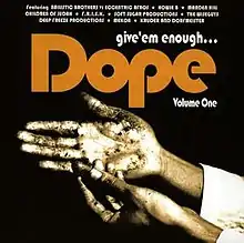 As the label had yet to release any music yet, Give 'Em Enough Dope Volume One became Wall of Sound’s first release.[2] Jones recalled of the album’s conception, “I didn’t have a big masterplan; it was just a natural progression of the work I was doing and where I was working.[2] Writer Siân Pattenden later reflected on the scenario: "[Jones] would hear tracks by trendy artists working in bedroom studios, which were released by Soul Trader. Jones thought the tunes needed to be heard by a wider audience, so he got his favourite tracks and released them as a compilation album."[3] The album was inspired by Headz (1994), a compilation album released by trip hop label Mo' Wax that features abstract hip hop music.[4]