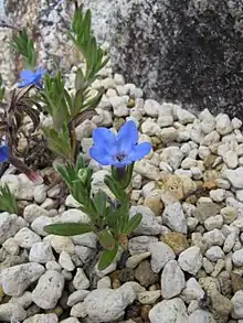 Glandora diffusa, the purple gromwell, syn. Lithodora diffusa, Lithospermum diffusa, is a species of flowering plant in the family Boraginaceae. It is a mat-forming perennial growing to 15 cm (6 in) tall by 60 cm (24 in) or more wide, with dark green, hairy evergreen leaves and masses of blue or white 5-lobed flowers. It is suitable for cultivation in a rock garden or alpine garden.[1]