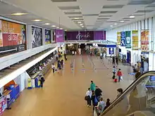 Prestwick airport is the only airport in Scotland with its own railway station, Prestwick International Airport railway station, built by the airport in 1994.[40] The station is connected to the terminal by an enclosed walkway over the A79 road, and platforms are accessed by stairs, escalators and lifts.[41] The station building continues to be owned and operated by the Airport, and not by Network Rail or ScotRail. The track through the station itself remains the responsibility of Network Rail.