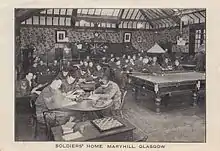 The building is category 'C' listed.[2] It is at 1236 Maryhill Road, Glasgow, on the corner of Ruchill Street. Construction was started in 1892,[3] triggering other similar facilities to be built at Redford Barracks in Edinburgh and Barry Buddon outside Dundee. For a fee soldiers could rent a room. The newlywed soldiers could spend their honeymoon night there. It also offered a tearoom and a quiet room.[4][5] Described as "a neat edifice open to visitors".[6] An honorary superindendant who served for 24 years was Willamina Davidson OBE raised substantial sums and was involved in the Edinburgh and Barry Buddon facilities.