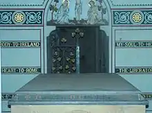 Prior to the establishment of Glasnevin Cemetery, Irish Catholics had no cemeteries of their own in which to bury their dead and, as the repressive Penal Laws of the eighteenth century placed heavy restrictions on the public performance of Catholic services, it had become normal practice for Catholics to conduct a limited version of their own funeral services in Protestant churchyards or graveyards. This situation continued until an incident at a funeral held at St. Kevin's Churchyard in 1823 provoked public outcry when a Protestant sexton reprimanded a Catholic priest for proceeding to perform a limited version of a funeral mass.[2] The outcry prompted Daniel O'Connell, champion of Catholic rights, to launch a campaign and prepare a legal opinion proving that there was actually no law passed forbidding praying for a dead Catholic in a graveyard. O'Connell pushed for the opening of a burial ground in which both Irish Catholics and Protestants could give their dead dignified burial.