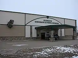 The Glendive Dinosaur and Fossil Museum is a private dinosaur museum in Glendive, Montana, in the United States. The museum was founded by Otis Kline,[1] and is owned by the non-profit organization Advancing Creation Truth.[2] It promotes a Young Earth creationist (YEC) explanation of evolution based on a literal interpretation of the Genesis creation narrative in the Bible. This creationist museum promotes the belief that dinosaurs and humans lived at the same time, including a belief that dinosaurs were on Noah's ark. Built between 2005 and 2009, mostly with volunteer labor, the structure is valued at about $4 million, not counting the value of the exhibits.[1]