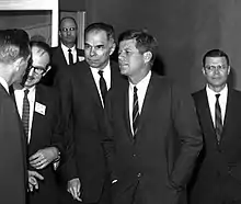 After appointment by President John F. Kennedy and confirmation by the United States Senate, Seaborg was chairman of the Atomic Energy Commission (AEC) from 1961 to 1971. During this time he advised 10 US presidents.[36] His pending appointment by President-elect Kennedy was nearly derailed in late 1960 when members of the Kennedy transition team learned that Seaborg had been listed in a U.S. News & World Report article as a member of "Nixon's Idea Men". Seaborg said that as a lifetime Democrat he was baffled when the article appeared associating him with outgoing Vice President Richard Nixon, a Republican whom Seaborg considered a casual acquaintance.[37]