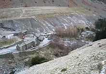 Above the village is the site of the former Greenside Mine, once the largest lead mine in the Lake District. Lead ore was discovered in the 18th century and the site was mined from the second half of the 18th century until the mine closed in 1962. Without the mine, the houses and economy of Glenridding and the surrounding area would not have existed.[8]
