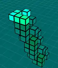 The glider is a pattern that travels across the board in Conway's Game of Life. It was first discovered by Richard K. Guy in 1969, while John Conway's group was attempting to track the evolution of the R-pentomino. Gliders are the smallest spaceships, and they travel diagonally at a speed of one cell every four generations, or . The glider is often produced from randomly generated starting configurations.[1] John Conway remarked that he wished he hadn't called it the glider. The game was developed before the widespread use of interactive computers, and after seeing it animated, he feels the glider looks more like an ant walking across the plane.[2]