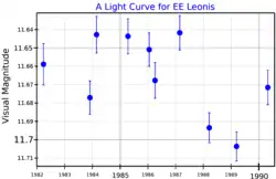 Gliese 402 is a BY Draconis variable, with its apparent magnitude varying between 11.64 and 11.70. The brightness changes are due to starspots and chromospheric activity combined with the rotation of the star. It has been given the variable star designation EE Leonis.[3]