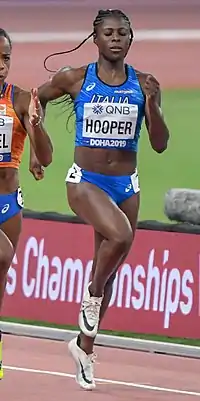 Gloria Hooper (born 3 March 1992) is a Ghanaian-Italian sprinter who won a silver medal at the 2018 Mediterranean Games.[1] She won seven times the national championships. She competed at the 2020 Summer Olympics, in 200 m.[2]