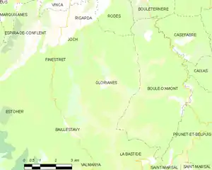 Glorianes is located in the canton of Le Canigou and in the arrondissement of Prades.