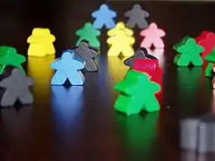 - A game piece which represents a person in concept, shaped like an approximation of a person.