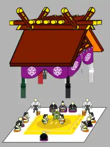 - 'Venue'. Any sumo tournament. Compare honbasho.
