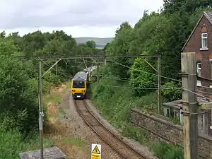 ![]() A Northern Rail Class 323 rounds a curve near Dinting in 2008 | |||