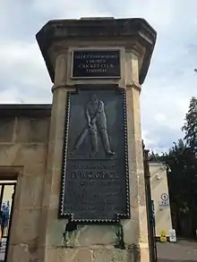 The club's debut home match in first-class cricket was played at Durdham Down in the Clifton district of Bristol.[11] This was the only time the county used this venue for a match.[12] The following year Gloucestershire began to play matches at the Clifton College Close Ground in the grounds of Clifton College in the same part of the city, and this remained a regular venue for the county until the 1930s, hosting nearly 100 first-class matches. In 1872 the county used a venue outside Bristol for the first time when they played at the College Ground in the grounds of Cheltenham College. This venue has continued to be used regularly for the county's annual "Cheltenham festival" event, which in the modern era incorporates additional charity events and off-field entertainment.[13] In 1889 Gloucestershire began to play matches at the Bristol County Ground in Bristol, which has subsequently served as the club's main headquarters and hosted the majority of the county's matches. It was here that the club played its first List A match in 1963 against Middlesex, and its first Twenty20 match forty years later against Worcestershire. Somerset have played first-class matches at other venues in the city.[9][10]