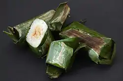 Lemper, glutinous rice filled with chicken wrapped in banana leaves