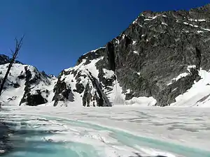 With a surface elevation of 8,220 feet (2,510 m) above sea level, Goat Lake often remains frozen into early summer.