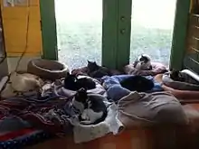 As a nonprofit shelter, the Refuge is run mainly by volunteers. There are two shifts of at least two volunteers each who look after the cats and socialize them to be ready for adoption.[6] In its first five years, the refuge has found homes for over 900 cats.[7] No cats are rejected or subjected to euthanasia unless past all hope of recovery. Unadoptable cats may live out their lives on the property as well.[2]