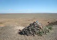 Archeologists and paleontologists have done excavations in the Nemegt Basin in the northwestern part of the Gobi Desert (in Mongolia), which is noted for its fossil treasures, including early mammals, dinosaur eggs, and prehistoric stone implements, some 100,000 years old.[9]