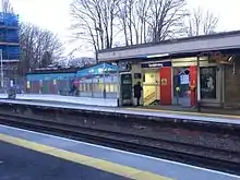 Godalming railway station is a stop on the Portsmouth Direct Line, 34 miles 37 chains (55.5 km) down the line from London Waterloo. The station, opened in 1859 to replace one on a different site, is situated at the edge of the town of Godalming, Surrey. The main station building is a Grade II listed building.[1]