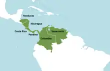 It is native range is the neotropics,[7] from Central America to Venezuela. It is also found in the countries of Colombia, Costa Rica,[10] Honduras, Nicaragua and Panamá.[4]
