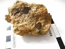 Its main modern use is as an iron ore, being referred to as brown iron ore.[4] Goethite is an important component of ochre pigments,[21] and has been heat-treated for use as a red pigment since Paleolithic times.[22] Iron-rich lateritic soils that have developed over serpentinite rocks in tropical climates are mined for their iron content, as well as other metals.[23]