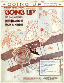 Going Up is a musical comedy in three acts with music by Louis Hirsch and book and lyrics by Otto Harbach and James Montgomery. Set in the US city of Lenox, Massachusetts, at the end of World War I, the musical tells the story of a writer turned aviator who wins the hand of the high society girl that he loves by his daring handling of the joystick of a biplane. Popular songs included "Hip Hooray", "If You Look in Her Eyes", "Kiss Me", "Going Up", "Do It for Me", "The Tickle Toe", and "Down! Up! Left! Right!".