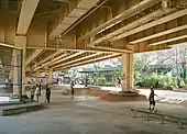 Golconda Skate Park, known as Fat Kid, is a public skate park in the Downtown Brooklyn/Fort Greene neighborhoods of Brooklyn, New York City, that originated as a DIY skate spot.[1][2] Built under the Brooklyn Queens Expressway, the 18,000 square foot professionally built skate park was completed in 2016 and sits within Golconda Playground.[3][2]