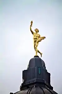 The Golden Boy (official name: Eternal Youth and the Spirit of Enterprise)[1][2] is a northward-facing statue perched on the dome of the Manitoba Legislative Building in Winnipeg, Manitoba, Canada. Arguably the province's best-known symbol,[3] the statue was modeled after the Roman god Mercury (Greek: Hermes) and is meant to represent the prosperity and entrepreneurial spirit of Manitoba.[1]