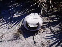 It has been suggested that gopher tortoises, more than other tortoise species, exhibit social behaviour. While primarily solitary creatures, gopher tortoises live in well-defined colonies which are similar to those of highly social animals such as the Prairie dog.[16] The distribution and proximity of burrows might be the consequence of social relationships between tortoises. Some females have been observed visiting the burrows of a particular female repeatedly, even if there are other tortoises closerby. This may be a sort of 'friendship', but such terms are not normally used to describe the relationships between animals.[26][27] Female gopher tortoises generally do not relocate once they have moved into a colony and larger males usually have their burrows adjacent to females in the spring.[28] It has been found that males can travel up to 500m to visit females and their burrows.[29]