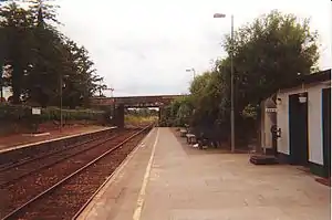 It consists of two platforms, one on the down passing loop. The loop is signalled only in the Enniscorthy direction. There is a water tower, still used by occasional steam trains, at the north end of the up platform. There is also a siding, formerly a loop, cut back to allow the platforms to be extended in early 2006.