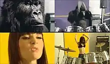 The campaign was well received by the British public. The commercial was uploaded to the video sharing website YouTube shortly after it was first broadcast, and was viewed over 500,000 times in the first week. By November 2007, it had been viewed over six million times across a large number of video sharing webhosts.[18] 70 Facebook groups appreciating the advertisement were set up[18] with one, named "We love the Cadbury's drumming gorilla", boasting 200 members.[2] A number of spoofs and parodies were quickly uploaded by amateurs with the tacit approval of Cadbury,[19] and the British branch of Wonderbra created and uploaded their own, Dan Cadan-directed version of the advertisement, replacing the gorilla with the Wonderbra model (and musician) Jentina[20] with the Cadbury strapline "A glass and half full of joy" being replaced with "Two cups full of joy". While Cadbury tacitly permitted limited display and modification of the commercial without authorisation,[19] the Wonderbra spot was later removed from YouTube following notification from Phil Collins Limited that the piece infringed its copyright to "In The Air Tonight".[21] Gorilla was further parodied as an introduction to the second half of the 2007 Children in Need special, with an actor dressed as Pudsey Bear taking the central role.[22] The British comedy series The Mighty Boosh features a drumming gorilla named Bollo, played by Dave Brown, and the actor appeared as Bollo in a viral video[23] auditioning for the Cadbury advert to promote the third series of the show. This video was later included as an Easter egg on the DVD release of series three.