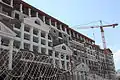 A new postmodern hotel village being built for the skiing area Gornaya Karusel, July 2013.