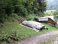 Gornji Dolič is the site of seven known mass graves from the period immediately after the Second World War.[6][7][8] The Kozjak Road Mass Grave (Slovene: Grobišče ob cesti na Kozjak) is located along Glažarica Creek, 150 meters (490 ft) north of the house at Kozjak no. 68. It contains the remains of 10 to 20 Croatian soldiers killed between 10 and 15 May 1945.[9] The Naveršnik Farm Mass Grave (Grobišče pri domačiji Naveršnik) is located about 10 meters (33 ft) north of an outbuilding at the Naveršnik farm (Gornji Dolič no. 45), in a ravine on the edge of the woods. It contains the remains of an unknown number of civilian victims murdered between 10 and 15 May 1945.[10] The Golčman Farm Mass Grave (Grobišče pri domačiji Golčman) lies in a meadow below the Golčman farm (Gornji Dolič no. 54), below a cliff at the edge of the woods. It contains the remains of three Croatian soldiers killed between 10 and 15 May 1945.[11] The Krajcer Farm Mass Grave (Grobišče pri domačiji Krajcer), also known as the Teržan Farm Mass Grave (Grobišče pri domačiji Teržan), is located near a shed on the Krajcer farm (Gornji Dolič no. 64a). It contains the remains of an unknown number of Croatian soldiers killed between 10 and 15 May 1945.[12] The Gornji Dolič 1, 2, and 3 mass graves (Grobišče Gornji Dolič 1, 2, 3) are located southwest of the settlement and contain the remains of 80 to 100 Croatian soldiers killed and civilians murdered between 12 and 14 May 1945. The Gornji Dolič 1 Mass Grave is located southeast of the Vocovnik farm (Završe no. 88), between the road, a spruce grove, and the Paka River.[13] The Gornji Dolič 2 and 3 mass graves are located between the road from Velenje to Slovenj Gradec and the right and left banks of the Paka River, south of the Turenšek farmhouse at Gornji Dolič no. 72.[14][15]