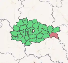 Gorshechensky District (Russian: Горше́ченский райо́н) is an administrative[1] and municipal[6] district (raion), one of the twenty-eight in Kursk Oblast, Russia. It is located in the east of the oblast. The area of the district is 1,400 square kilometers (540 sq mi).[2] Its administrative center is the urban locality (a work settlement) of Gorshechnoye.[1] Population: 18,591 (2010 Census);[3] 22,835 (2002 Census);[8] 26,372 (1989 Census).[9] The population of Gorshechnoye accounts for 33.0% of the district's total population.[3]