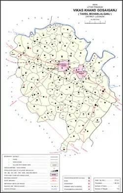 Gosainganj, also spelled Goshainganj or Gosaiganj is a town and nagar panchayat in Lucknow district of Uttar Pradesh, India.[1] It is the seat of a community development block, which is included in the tehsil of Mohanlalganj.[1] As of 2011, its population is 9,649, in 1,685 households.[1] The starting point of the Purvanchal Expressway i.e. Chand Saray village is situated 2.5 km away from Gosainganj.