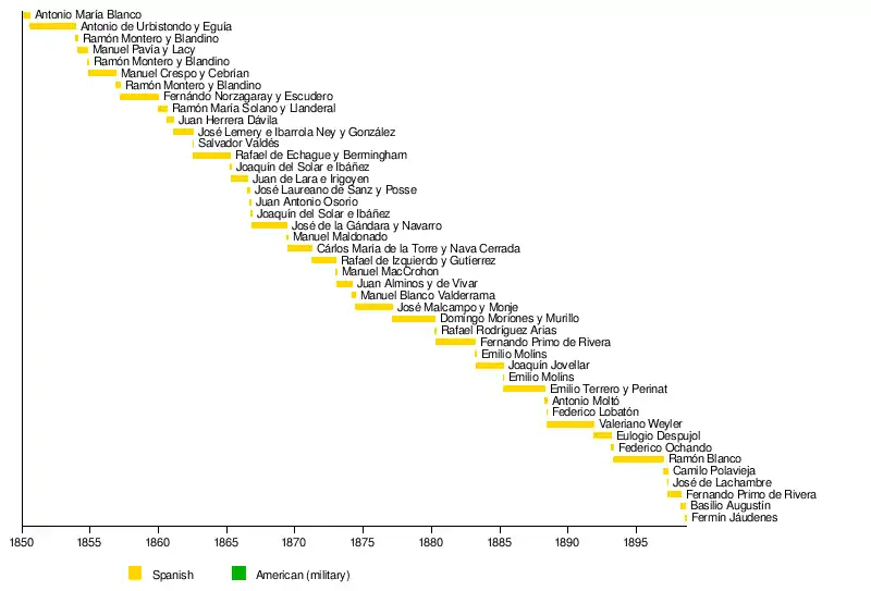 Wesley Merritt | August 14, 1898[3] | August 30, 1898[4] | ![]() William McKinley (March 4, 1897 – September 14, 1901) |