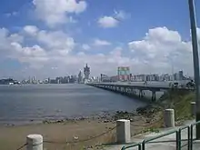 The Governor Nobre de Carvalho Bridge also known as the Macau-Taipa Bridge, is a dual-lane two-way bridge connecting Macau Peninsula near Casino Lisboa and the island of Taipa at the northern slope of Taipa Pequena (Small Taipa Hill) crossing the former Baía da Praia Grande. It is the first bridge in Macau, to connect the peninsula and Taipa. It is locally known as "The Old Bridge" (Chinese: 舊大橋).[1]