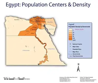Data taken from CAPMAS:.[6] Information for population is in thousands, pop density - persons/km2 and area is in km2.