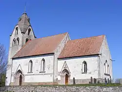 The church is large in comparison with other country churches on Gotland, and built of local sandstone.[3] The nave is divided in three sections by sturdy columns. The choir lacks an apse and instead ends with three slender Gothic windows, a design typical for medieval churches on Gotland. The tower is Romanesque but the spire dates from the 18th century.[1]
