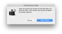 - Timed - screen lets user start a timer and activate part of the screen (such as a menu), and then takes a picture of the screen.[3]