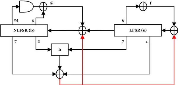 In addition to the feedback polynomials, the update functions for the NLFSR and the LFSR are: