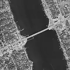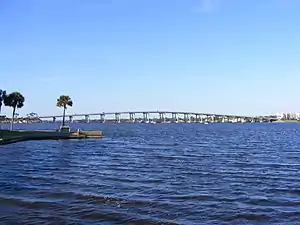 The Granada Bridge is a high-clearance bridge that spans the Halifax River and Intracoastal Waterway, linking the mainland and beach peninsula parts of Ormond Beach, Volusia County, Florida. Granada Bridge carries four lanes of State Road 40 and Granada Blvd.[1] The Casements, along with City Hall Plaza, Fortunato Park, and Riverbridge Park reside at the four corners of Ormond Beach's Granada Bridge,[2] which give their collective name to the annual "Four Corners Festival" in Ormond Beach.[3]