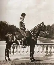 Under Nicholas II, the grand duke received further promotions. On 26 May 1896, he was raised to the rank of Major-General, and three months later, he was named General à la suite in the Imperial Entourage. On 19 December 1904, Dmitry Konstantinovich was promoted to Lieutenant General and appointed Adjutant General to Nicholas II. Nicholas II also appointed the grand duke general director of the Imperial Stud in 1896. Despite his love of the military, it was this later post that struck the deepest chord in Dmitry Konstantinovich. On learning of his appointment, the grand duke — whom one courtier termed "timid beyond imagination" declared, " I should have eagerly accepted the appointment if it only meant looking after horses… I am afraid I shall never get on properly with officials."[8]