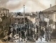 Freemasons figure heavily in the establishment of New Mexico as a state. 25 of the 99 delegates who attended the 1910 Constitutional Convention were Freemasons, according to the biographical notes in the convention yearbook.[28] Far from constituting a voting block, the Freemason delegates at the convention came from across the state, and across the socio-economic and political spectra. Nine were Republicans (who dominated the convention with about two thirds of the delegates), fifteen were Democrats, and one was a Socialist.[29] Three of the delegates who were Freemasons were Past Grand Masters of the Grand Lodge, namely Elias S. Stover (1900), Arthur H. Harllee (1901), and James G. Fitch (1905).[30] The most influential Mason at the Convention, however, was Thomas B. Catron, a leading member of the so-called Santa Fe Ring and one of the largest landowners in the United States.[31]